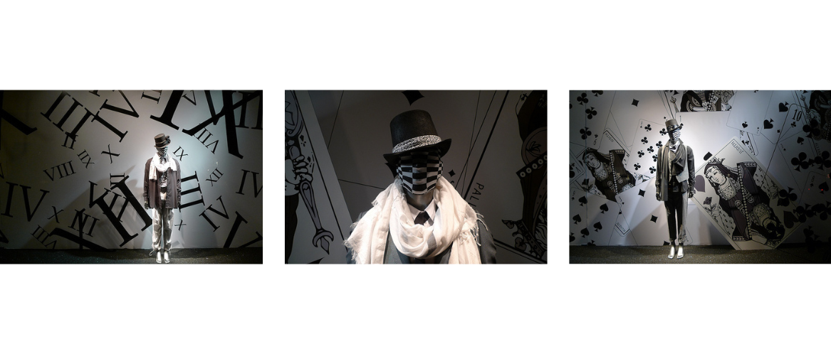 Paris, capitale mondiale de la mode, est aussi une ville où la créativité des vitrines s’exprime avec force. Dans des lieux emblématiques comme le Printemps Homme, on retrouve des scénographies inspirées de contes, d’univers imaginaires ou de références culturelles, sublimées par l’utilisation de mannequins de vitrine abstraits. Sans traits définis, ces silhouettes épurées laissent volontairement place à l’interprétation et offrent un terrain de jeu idéal aux merchandisers, qui peuvent ainsi raconter une histoire sans imposer de visage.