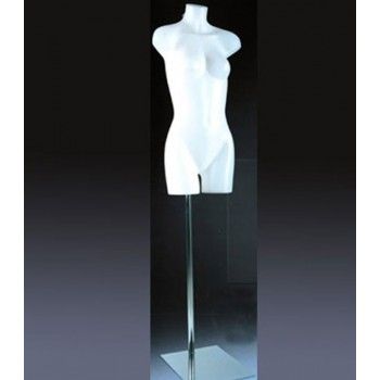Weiße Damenbüste aus Kunststoff, ideal zur Präsentation von Dessous, Kleidern und Accessoires. Mit klassischen Maßen und einem schlichten Design bietet diese Büste, auch „Torso“ genannt, Schultern und Beine für eine optimale Hervorhebung Ihrer Gegenstände. Seine leichte Kunststoffkonstruktion erleichtert die Handhabung und Wartung. Diese vielseitige und erschwingliche Büste besticht durch ihr hervorragendes Preis-Leistungs-Verhältnis und ist somit eine praktische Wahl für Ihr Fenster oder Ihre Werkstatt.