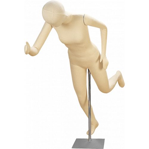 Diese Schaufensterpuppe für Frauen in Laufposition ist ideal, um sportliche Outfits oder dynamische Kollektionen in Szene zu setzen. Ihr sportliches und energiegeladenes Aussehen zieht sofort die Aufmerksamkeit auf sich und verleiht Ihren Schaufenstern mehr Dynamik. Dank ihrer außergewöhnlichen Flexibilität ist diese Schaufensterfigur leicht zu handhaben und kann mühelos verschiedene Posen einnehmen, sodass Sie abwechslungsreiche und aussagekräftige Szenerien gestalten können. Die Gesichtszüge sind nicht gezeichnet, sodass sich die Aufmerksamkeit auf die ausgestellten Kleidungsstücke und Accessoires konzentrieren kann, während sie gleichzeitig eine leere Leinwand für Fantasie und Kreativität bietet. Dieses Modell ist auch als Herrenversion erhältlich und ermöglicht es Ihnen, Ihre Schaufenster harmonisch und stilvoll aufeinander abzustimmen.