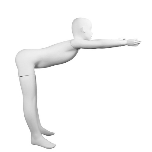 This 8-year-old mannequin, bent over with its arms outstretched in front of it, adds a touch of movement and vitality to your window displays. Its versatile posture is perfect for depicting a play scene, sporting activities such as gymnastics, or the grace of a dance in full swing. Designed to adapt to your needs, it combines dynamism and realism, providing the ideal support for your children's clothing and accessories. This mannequin allows you to tell a captivating story that will catch the eye and pique the interest of your customers.