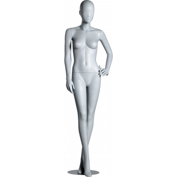 This semi-abstract-faced female mannequin embodies elegance and mystery with a delicate, elegant posture. Ideal for creating a subtle, refined ambiance, this mannequin is perfect for enhancing your clothing and accessories collections with a staging that catches the eye of passers-by. The semi-abstract face allows versatility in presentation, highlighting your creations rather than frozen expressions. This neutrality reinforces the modern, minimalist style of this mannequin, making your window displays both artistic and timeless.