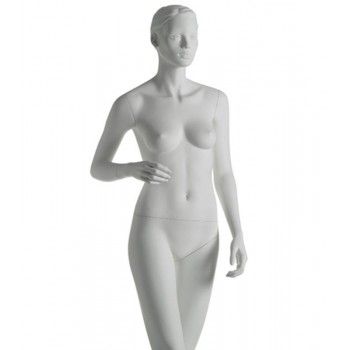 Ce mannequin femme stylisé attire immédiatement l'attention grâce à sa posture dynamique avec ces bras dans un mouvement élancé, qui dégage une attitude élégante et sophistiquée. Idéal pour sublimer vos collections de vêtements, il met en valeur les tenues de manière élégante et moderne. Doté d'une tête sculptée avec des cheveux stylisés, ce mannequin se distingue par ses détails soignés et artistiques. Le visage lisse offre la possibilité d'être maquillé, ce qui permet de créer un look personnalisé pour chaque présentation. Cette option de maquillage vous permet d’adapter le mannequin à des styles variés, qu'il s'agisse de looks minimalistes ou plus audacieux.